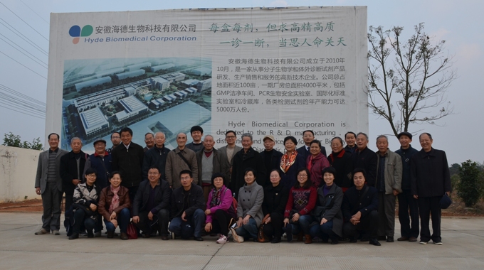 下午,老同志们乘车前往芜湖县新芜经济开发区安徽海德生物科技技术有限公司进行考察参观。安徽海德生物科技有限公司是世界一流的癌症早期诊断研发基地,有十三项系列产品,目前主导产品为早期乳腺癌胶原蛋白和唐氏综合症诊断试剂盒,它的骨干均来自国际领先的医药行业,并邀请业内多位国际知名专家担任顾问。企业的创办人、公司的总经理沈智勇博士为美国临床化学学会的会员,美高梅4858线路登录的优秀校友。