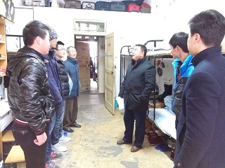 新学期初,学院党委书记史铁杰、院长朱昌青带领学院领导班子成员,带着对学生的关爱和责任逐一走进每一个男生寝室与学生亲切交流。每到一间寝室,领导们都主动询问同学们学习和生活情况,关心同学们在专业学习、日常生活等方面中遇到的问题,并鼓励同学们说:“一年之计在于春,新学期伊始,要珍惜学习的美好时光,做好新一学期的成长新规划。”走访过程中,学院领导认真倾听学生对学院、学校教育教学方面的建议,并做下了详细记录。同时,学院领导也十分关心学生寝室的住宿环境和安全,就学生反映的楼道垃圾清理、寝室公物维修等问题,现场便立即与学校有关部门取得联系,反映学生的意见,沟通解决的措施,使大家感受到了学院以人为本的温暖育人氛围。