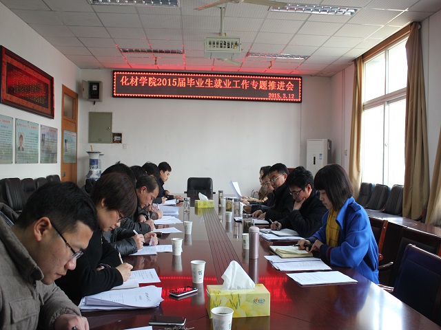 为切实做好2015届毕业生就业指导和服务工作,进一步提高毕业生就业工作的质量和水平,近日,美高梅4858线路登录在生化楼二楼会议室召开毕业生考研就业工作推进会,专题研究部署2015年毕业生考研就业各项工作。学院领导班子、各系主任和全体学工组成员出席此次会议。会议由学院党委书记史铁杰主持。