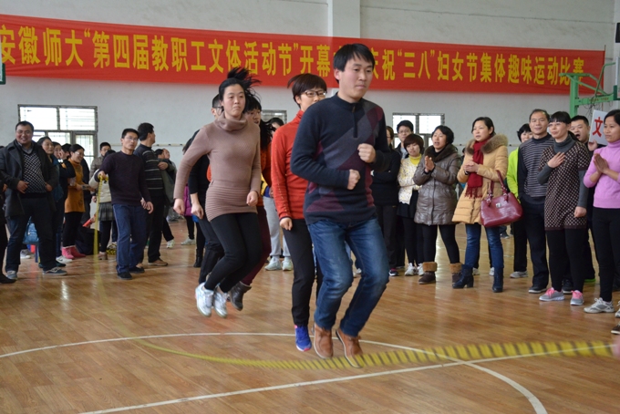 3月11日,学院工会组织教师在花津校区北侧体育馆参加校工会的趣味运动。此次趣味运动会共有两项运动项目,均是需要教师互相合作的趣味游戏。在第一轮“欢腾喜洋洋”集体跳绳游戏中,凌从祥、阙荣辉、苏桂琴等老师齐心合力,相互配合默契,在3分钟内一共跳了215个,赢得周围的老师和学生都一阵欢呼。第二轮的“齐心逐梦”绑腿跑游戏中,每两位老师一组,参加接力跑。美高梅4858线路登录教师在两项游戏中均获得不错的成绩,最终赢得比赛一等奖。教师们在游戏中既活动了筋骨,也放开了心怀。