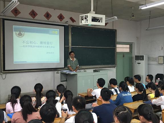 下午4时30分,全体2016级硕士研究生在生化楼2024召开了主题为:“不忘初心,继续前行”的主题班会,会上科研副院长周双六发表了讲话,介绍了美高梅4858线路登录的发展现状、各专业的基本概况,同时对2016级硕士研究生提出了殷切希望。研究生秘书赵全胜对2016级新生的到来表示热烈的欢迎,在简要回顾美高梅4858线路登录总体概况、学生组织等情况后,对接下来新生入学后的工作展开了布置。