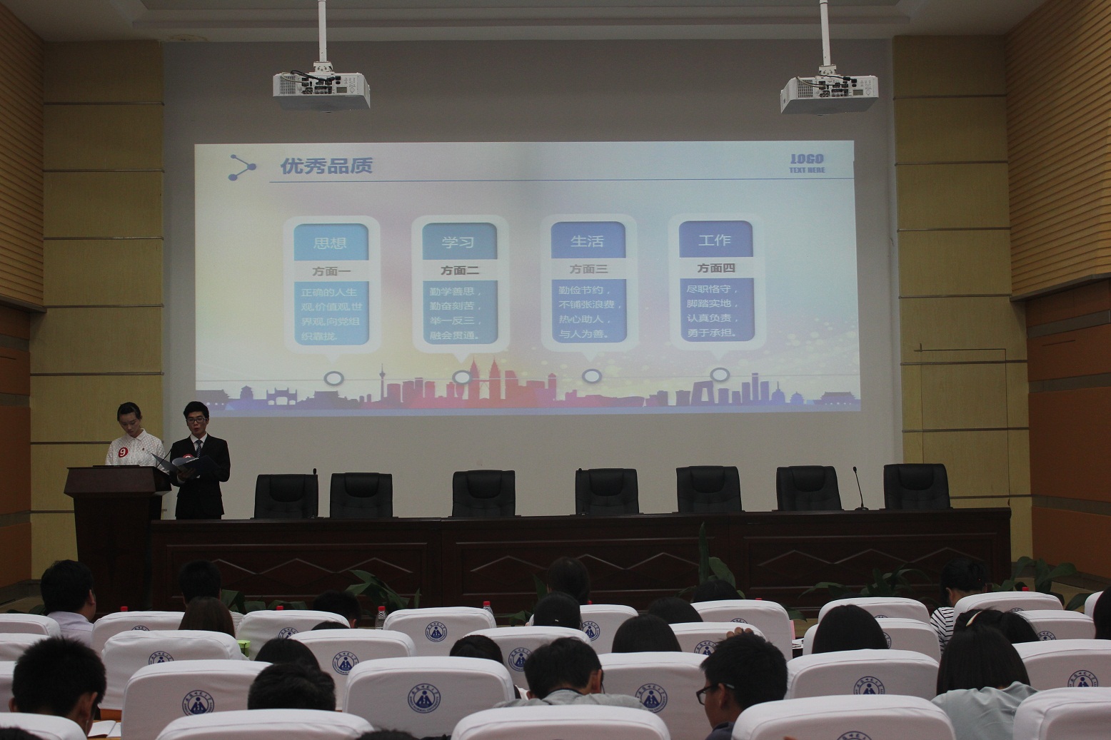 本网讯(美高梅4858线路登录团委 邹雯婷 蒋建伟)9月23日晚,美高梅4858线路登录2015-2016学年先进班集体评选汇报会在赭山校区科技小礼堂隆重举行。美高梅4858线路登录党委副书记余妍霞、学院团委蒋建伟老师及各年级辅导员受邀出席并担任评委,2016级全体新生参加了本次汇报会。