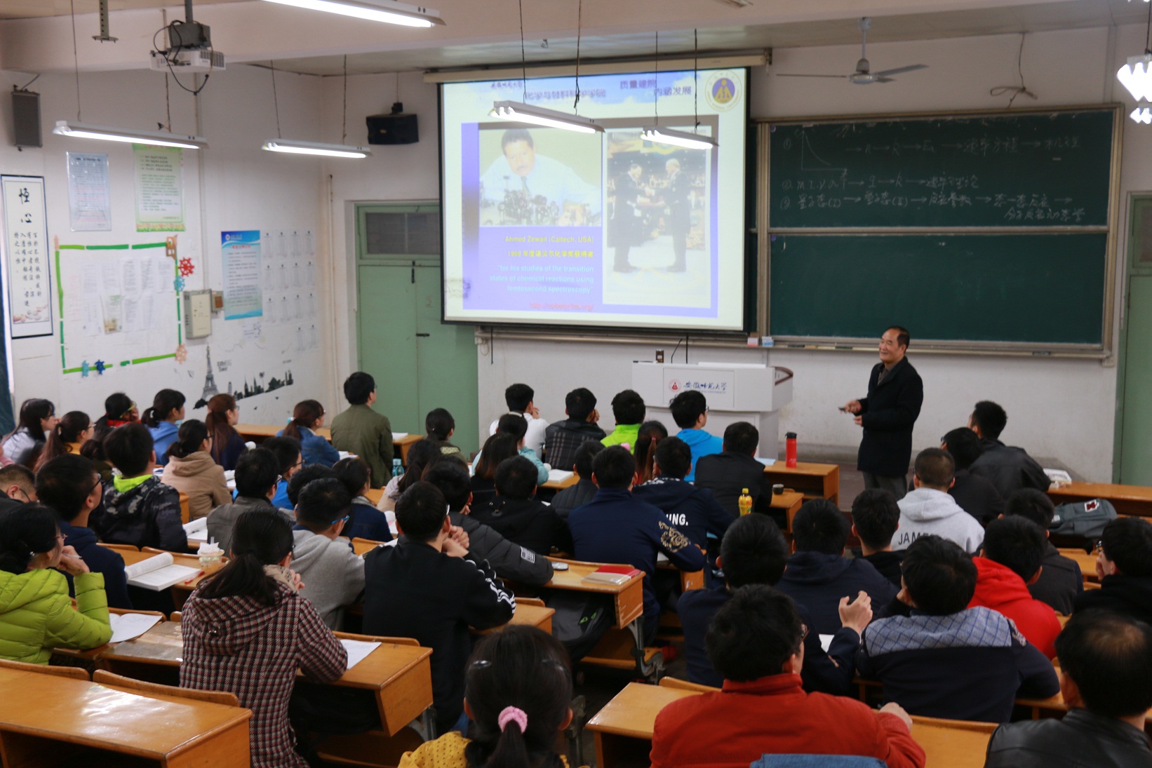 在进入主题之前,吴华强老师带领同学们一起对《物理化学》下册的知识结构做了简单梳理和整体分析。在授课过程中,吴教授时刻注意循循善诱,讲解由浅入深,在启发同学们自由发言、自主思考的同时,也为同学们标出了章节的重难点,使同学们能够更好地结合书本知识、把握课堂教学。吴华强教授围绕着“化学动力学”主题,从“基本概念”、“基本任务”、“基本内容”、“动热关系”等五个方面向同学们做了详细的阐述,并引用大量学以致用的鲜活案例帮助学生理解知识点,如金属腐蚀对泰坦尼克号沉没的影响、汽车尾气的排放与处理等,联系到课本所学“牺牲阳极的阴极保护法”以及“化学反应的速率与进度”等,在活跃了课堂气氛的同时,也帮助同学们更好的消化和吸收了专业知识。在讲到细节之处,吴老师还特地指出了书本内容中表述不完善的地方,以免同学们在学习、阅读时受到误导。导读部分结束后,吴教授总结道:“我们学化学,必须要从最基础的做起,既要仰望星空,也要脚踏实地。”