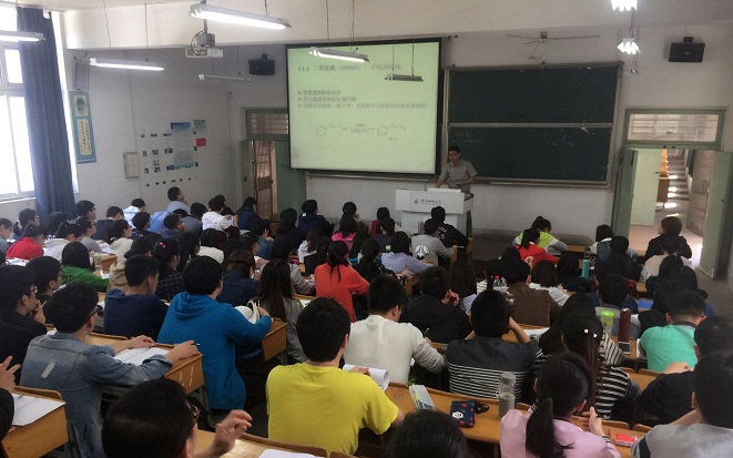在讲授今天的课程之前,柴卓老师首先带着同学们回顾了上节课的重要内容,几种氧化剂的组成及性质和应用,特别提醒同学们注意了关于Jones试剂和collins试剂适宜的使用条件及如何应用。今天讲解的主要内容是“酮的氧化”,柴卓老师带领着同学们从baeyer-Villiger氧化开始讲解起,首先针对于典型的反应详细的列举出每一步反应的机理,以同学们已经有的化学知识为基础,向同学们讲解了烃基迁移和重排的过程。接着由点至面,一步步的发散开来,知识之间的联系由浅入深,通过对不同化学试剂在同种反应的不同的效用进行了直观的对比,使同学们对于各种试剂烃基的迁移能力有了清晰明了的认识。同学们的注意力都被拆卓老师吸引住了,对于新学习的知识都非常的感兴趣,各个聚精会神的听着,不时的将自己的感悟记录下来,柴卓老师在这一小段小结时提出了小问题,同学们纷纷思考起来,相互的交换自己的想法和见解,一时课堂上同学们竞相发言,清晰有理的表明自己的看法。柴卓老师认真的聆听同学们的发言,不时的提出各种建议,对同学们的思路进行完善。一堂本是晦涩难懂的有机合成课在柴卓老师的讲解下却格外的妙趣横生,在学生和老师们的阵阵掌声中落下帷幕。