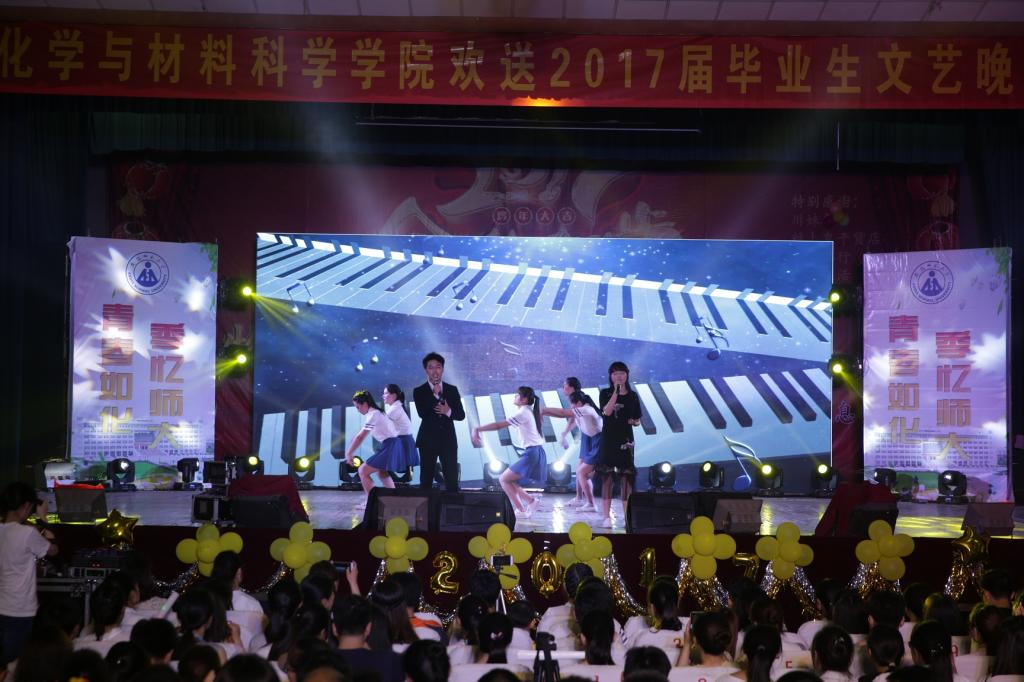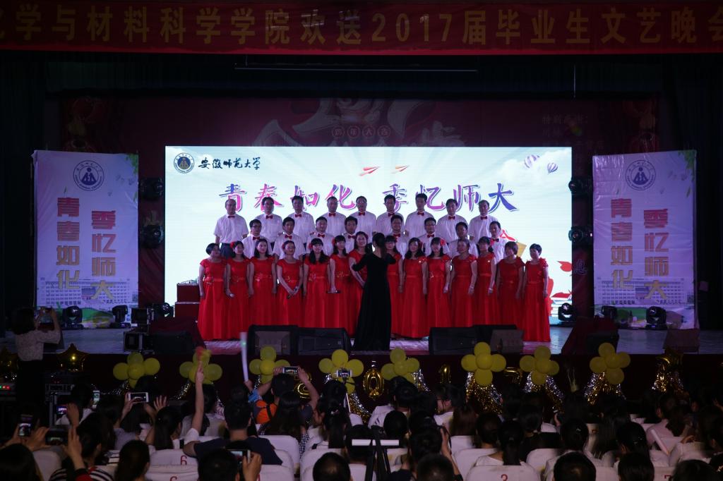 现代舞串烧《summer thing》让炫酷的舞姿与化材学子的青春擦出了别样的火花,点燃全场气氛,赢得了观众们的认可。生活点滴再追忆,母校四年也铭心。由辅导员老师和同学们共同带来的情景剧《还记得四年花开》,以学生的日常学习生活为切入点,再现了让人难以忘怀的瞬间,牵动着毕业生们的回忆。歌曲《再见师大》,同学们自填的极具师大风格的歌词,唱出了众多毕业生对师大的一份归属感,也唱出了毕业生对于梦想的孜孜以求。除却精彩的节目,让人不舍的是回忆,毕业微视频《青春如你》让每一位在美高梅4858线路登录学习的学子为之动容。故园长亭三里梦,旧地短歌七尺情。学院博士合唱团的歌曲《送别》,老师们用最质朴的歌喉谱写出了师生情谊的难舍难分,唱出了母校对毕业班同学的殷切祝福和深深留念。在美妙的歌声中,本次毕业生晚会圆满落幕。