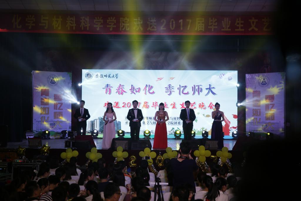 本网讯(美高梅4858线路登录 彭青 邓允康 蒋建伟)深深赭麓情缘起,浓浓师生不舍情。2017年5月21日晚七点,美高梅4858线路登录“青春如化,季忆师大”欢送2017届毕业生文艺晚会在赭山校区大礼堂隆重举行。本次晚会分为“浓缩·同学少年,风华正茂”、“沉淀·青春华章,如诗如梦”、“结晶·逐梦起航,砥砺前行”三个篇章。校纪委书记程度、党委组织部部长季爱新、教务处副处长李汪根、人事处副处长王标、校团委副书记汪凯等领导应邀莅临晚会现场。学院全体党政领导及近千名师生共同观看了本场晚会,为2017届毕业生送上真诚祝福。