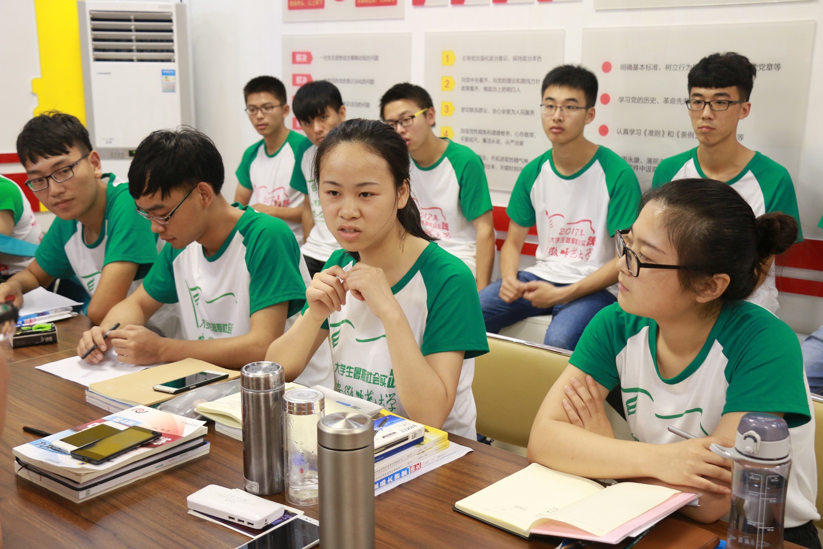 会后,学院领导老师与32名实践志愿者座谈心得、畅谈感受。志愿者们积极汇报心得体会,分享支教故事,畅谈实践感想。2015级材料化学杨经纬认真分析自己所带的班级情况和自身上课情况,杨帆在几天的教学之后表示自己能够看出学生一点一滴的进步,江真星表示因同学们上课时的认真态度感到压力倍增进而一定更加努力。老师们也表达了对团队的信任及殷切期望,希望可以在暑期社会实践活动中让每位同学都能得到锻炼。学院党委副书记余妍霞充分肯定并赞赏了志愿者爱心和责任心的成长,她以“一种青春,一种责任”、“一段实践,一段成长”、“一段经历,一生回忆”三句话赠送给志愿者,勉励大家在实践中练就过硬本领、锤炼高尚情操、贡献青春力量。