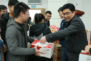 学院领导及各系负责老师亲自为考研学子发放牛奶等营养品。天气虽冷,但是学院给予同学的关爱是暖的。同学们纷纷表示,有了学院和老师们的关爱,自己将会以更加饱满的精神状态去努力拼搏,不辜负学院和老师的期盼。