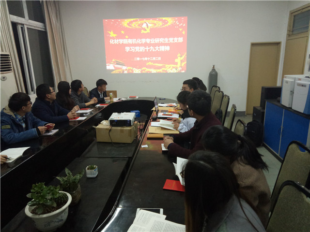 12月2日,应化及高分子研究生党支部在理科实训大楼707党员活动室召开十九大精神学习会。会议由支部书记王巧莹同志带领大家一起学习十九大精神,历时两个小时,会议简述了十九大报告的十三个部分,着重学习了十九大的主题、使命和思想,突出强调了我国进入中国特色社会主义新时代,我国社会主要矛盾已经转化为人民日益增长的美好生活需要和不平衡不充分的发展之间的矛盾。此次十九大精神的学习,支部全体党员均积极响应党组织的号召,热情参与,积极互动,争相发表意见,学习氛围浓厚,热情高涨,全体同志均受益匪浅、收获颇丰。