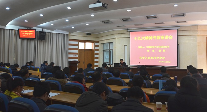 12月25日下午,美高梅4858线路登录在花津校区视频会议室举办“创新中国”—党的十九大精神专家宣讲报告会,特邀科研处处长陆林教授为全院教职工做题为《创新中国—党的十九大精神解读》辅导报告,报告会由学院党委书记汪俊武主持。