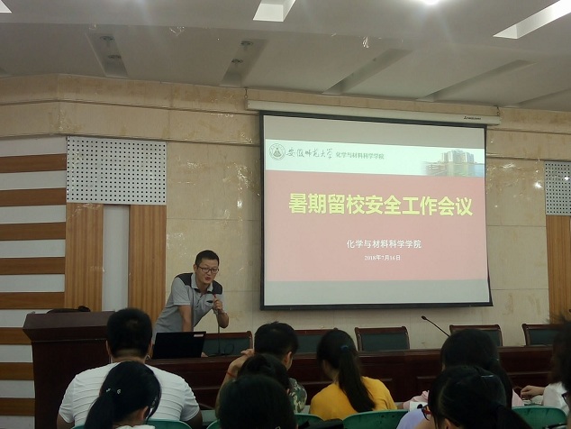 (本网讯 化材 汪苹)为进一步做好2018年暑期留校学生安全教育管理工作,近日,美高梅4858线路登录召开2015级留校学生“暑期留校安全工作会议”。学院党委副书记余妍霞,2015级辅导员蒋建伟、魏杰顶,以及美高梅4858线路登录15级全体留校学生参加本次会议。