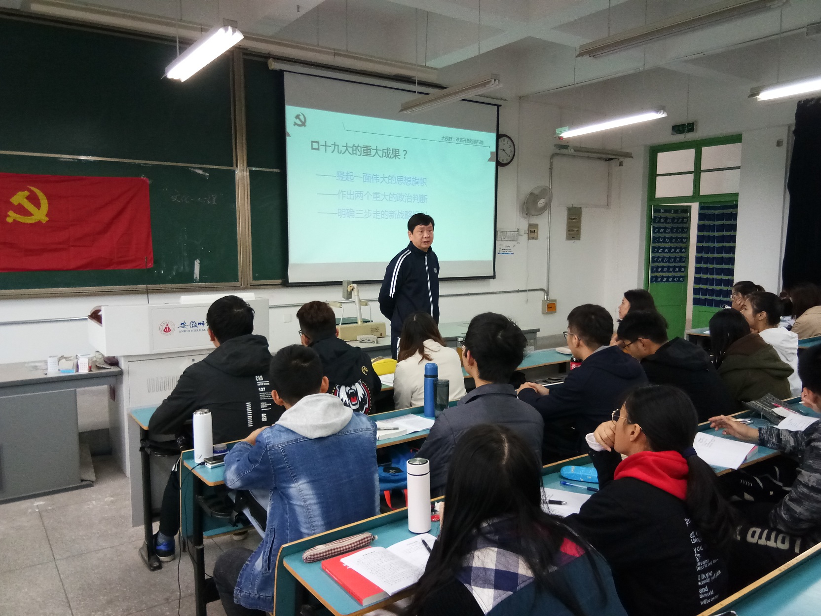 今年是中国的改革开放事业迎来40周年的重要历史节点,课上胡靖部长以十九大的成功召开为背景,从“大视野·改革开放的道与路”“新时代中国特色社会主义的大逻辑”两方面展开论述,着重阐发了“两个必然”“两个绝不会”和“社会主义从一国到多国的胜利”三大内容。授课期间,胡靖部长引经据典,妙语连珠,一改党课的肃穆常态。他称马克思是“幽灵”——资本主义社会的幽灵,“富二代”——不只是物质的富裕更是精神的富足,“叛徒”——不断学习他人批判他人,自我反省自我提升。三个巧喻在活跃了课堂氛围的同时拉近了学员与伟人的距离。课程中,胡靖部长抛出“中国为什么要走中国特色社会主义道路”“共产主义是什么”两大问题,引领学员思考,促使其深入了解中国共产党的内涵,坚定党的责任感。