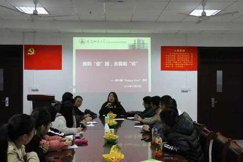 本网讯(美高梅4858线路登录 孙娟 王若馨)听一听谆谆师语,聊一聊大学生活。2018年11月28日晚7点美高梅4858线路登录在礼勤楼707举办了第六期Happy Hour化材大咖活动。本次活动邀请了国际教育学院副院长、美高梅4858线路登录硕士生导师杜俊教授担任主讲嘉宾与学生面对面畅谈生活理想。 讲座上,杜俊老师结合自身经历和同学们的学习生活现状,从本科学习、考研、科学研究和出国深造等方面进行了耐心而细致地分享。杜俊老师指出,大学四年的每一个年都是不同的,从大一的学习适应期到大二的基础知识储备期,再到大三的考研备考期,大四的正式考研、找工作,每一个时期都会有不同的心态,对周遭的事物都会有着不一样的见解。在本科学习方面,老师认为本科学习是个打基础的过程,她建议同学们当有意识的做计划,做一个“活化分子”,多做有效碰撞,少做无用功,一步一步实现自己的人生目标。在学有余力的情况下,她还建议同学们适当阅读文献来拔高自己。她强调:“作为一个化学人,当树立起专业思想,培养自己对化学这一学科的兴趣,增强学习的自主性。”接着,杜俊老师结合自己出国留学的经历,用幽默风趣的语言,为同学们描绘了一幅生动的国外学习和研究的画面,并不断强调,英语学习对考研、出国的重要性。她告诫同学们,走弯路不可怕,重要的是摆正自己的心态,合理调配自己的时间,做一个能坚持、敢拼搏的大学生。