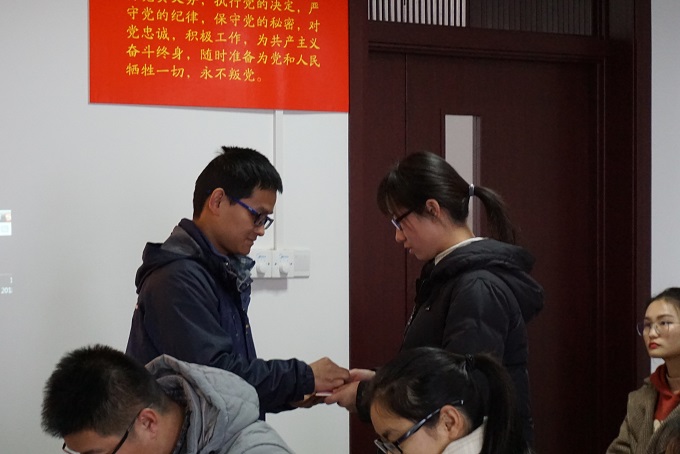 12月26日下午,美高梅4858线路登录党委在707党员活动室召开2018年下半年新发展党员入党宣誓大会,会议由学院党委组织员汪丰云老师主持,学院党委委员、党支部书记和全体新党员参加了会议。
