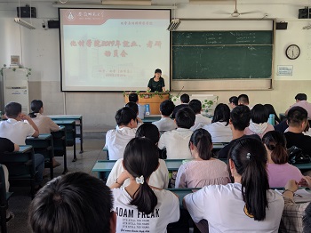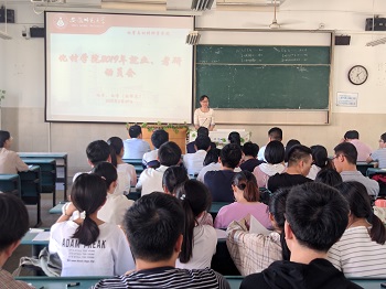在教学楼2020403会场,化学系副主任孙影老师从选择、方向、方法、心态四个层面首先做了动员讲话,为与会同学提供了全面的、系统的考研建议。化学系主任阚显文老师则是从选择的角度出发,对同学们选择就业考研、选择学校专业提出了自己的建议,她指出选择要量力而行,所定目标不能过高或过低。院党委书记汪书记最后做了总结讲话,他对与会同学提出了明确目标、积极准备、行动起来三个要求。他指出,目标选择并无对错,但是务必清晰、坚定,选定目标后要早做、做全准备,最后要落在一个“干”字上,并结合学院往届的考研、就业情况,为同学们提供了一条清晰的就业、考研时间线。
