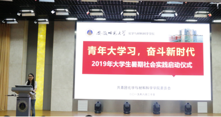 据悉,美高梅4858线路登录一直高度重视暑期社会实践,今年学院的实践内容紧跟时代步伐并结合专业特色,共分为四大主题团队,即五四先锋团、专业见习团、环保宣教团、爱心服务团,分别投身红色调研、爱心支教、科普宣讲等多个实践活动。全院共组建6支校级重点团队、23支院级重点团队,近500多名化材学子。同时,本次启动仪式让同学们在多方面、多角度对暑期社会实践有了一个较为深刻全面的了解,也大大鼓舞了参与本次活动同学,书写了2019年暑期社会实践活动新篇章的第一页。