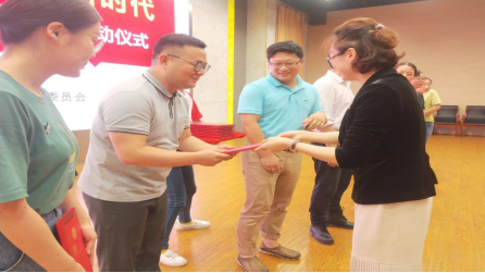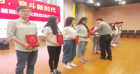 会议在雄壮的国歌声中拉开序幕。随后,院团委书记王国良老师介绍了团队组建情况。美高梅4858线路登录院长高峰宣读了指导老师聘用决定,为充分调动党团联动、本硕联动、发挥团队教育的优势,学院特聘6名党员同学以及6名研究生同学为美高梅4858线路登录暑期社会实践团队小指导老师,由校团委书记梁燕为团队指导老师代表颁发聘书,美高梅4858线路登录党委书记汪俊武为研究生、党员小指导老师颁发聘书,化材学院院长高峰及学院指导老师,分别向校级和院级重点团队队长授旗。