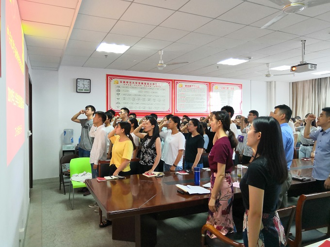 本网讯(美高梅4858线路登录)7月1日下午,美高梅4858线路登录在礼勤楼707室党员活动室召开庆祝建党98周年主题党日活动。学院党委委员、支部书记以及2019年上半年新发展的党员参加了会议,会议由学院党委副书记余妍霞主持。