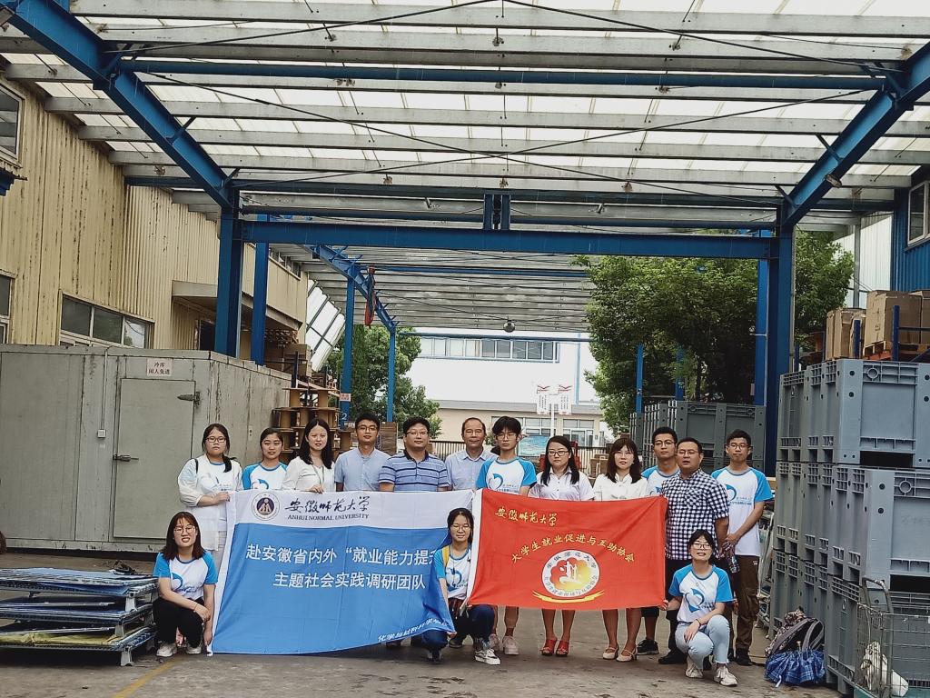 躬耕实践长才干,立足实践求发展。为帮助大学生提高就业创业意识,加强校企合作,拉近学生和企业之间的距离。美高梅4858线路登录副院长张小俊、材料化学系主任王正华老师、团队指导老师程紫丹老师带领美高梅4858线路登录赴安徽省内外“就业能力提升”主题调研团队于7月12日上午赴芜湖佳宏新材料有限公司进行走访实践。