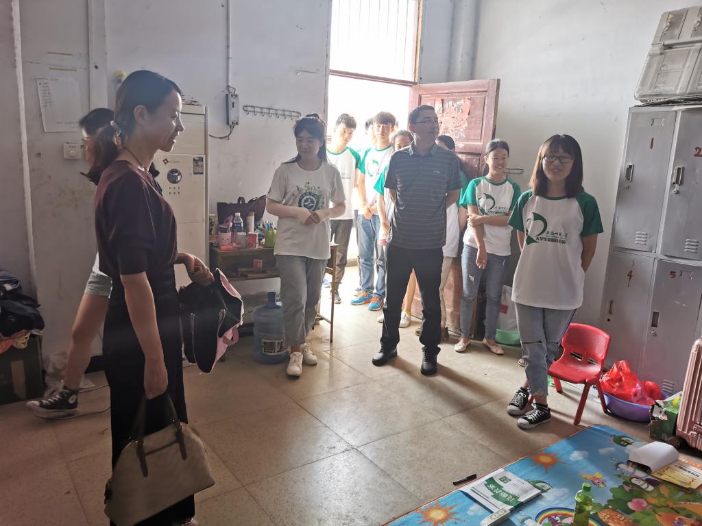 2019年7月14日下午,安徽师范大学美高梅4858线路登录党委书记汪俊武、党委副书记余妍霞、团委负责人陶勇一行来到位于阜阳市阜南县老关村拓新小学实地走访慰问在此开展义务支教实践活动的同学们。院领导们依次走访了实践学校的食堂、宿舍、教室,并就实践团队当前活动开展情况、队员生活情况等与团队队长进行了深入交流。由于实践基地位置较为偏远,实践基地多为农村留守儿童,且周边淮河水系环绕,院领导多次提醒队员们在开展实践活动的同时还需密切关注自身与学生们的人身安全,在传授文化知识的同学深入开展安全知识普及教育,在将教学与实践的结合融入日常。