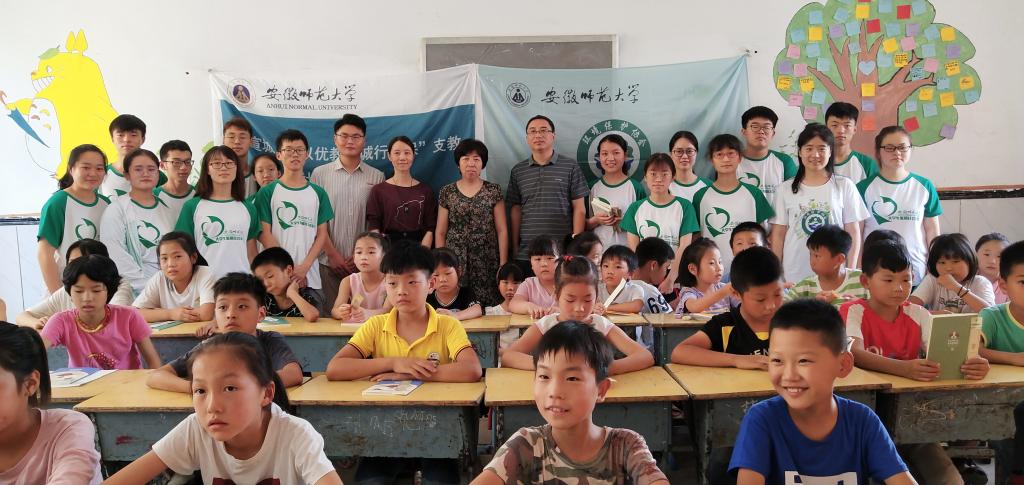 随后,领导老师们与拓新小学张校长一同走进教室,看望正在进行教学授课的同学们。院党委书记汪俊武为当地孩子们分发学习用品作为炎炎夏日的慰问品。活动的最后,院领导、校长、实践团队成员以及学生们进行合影留念。