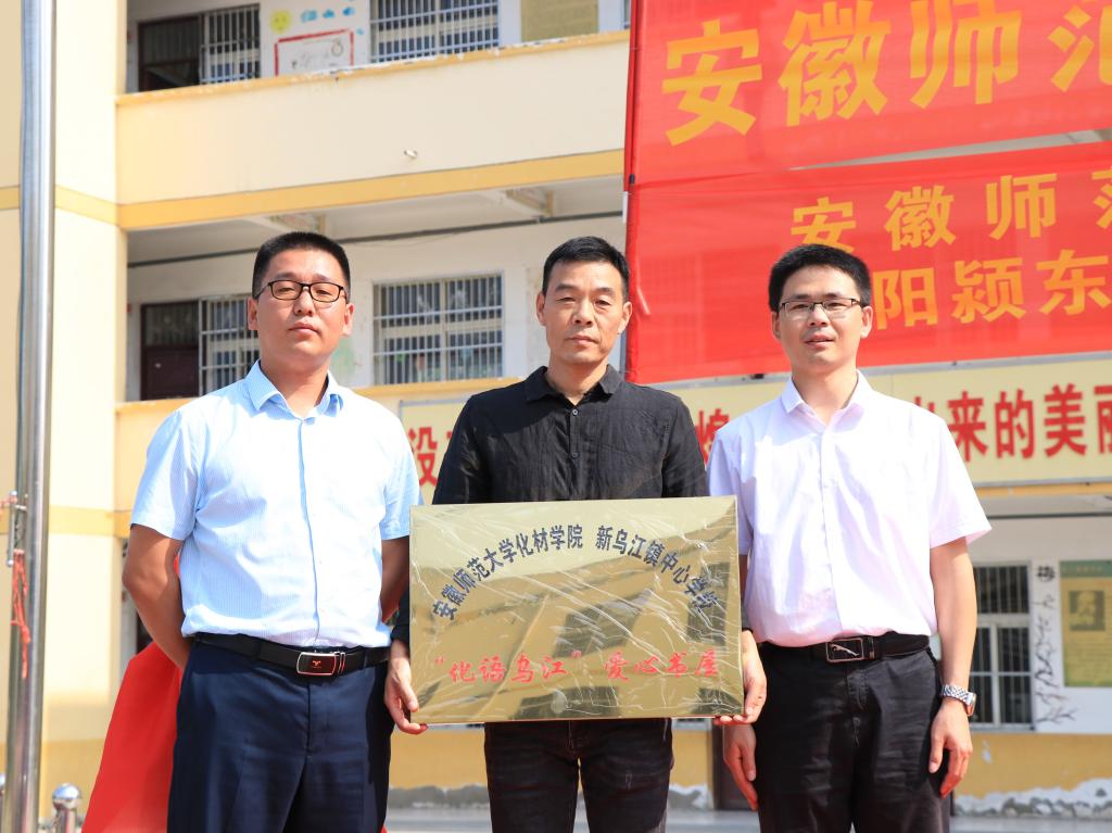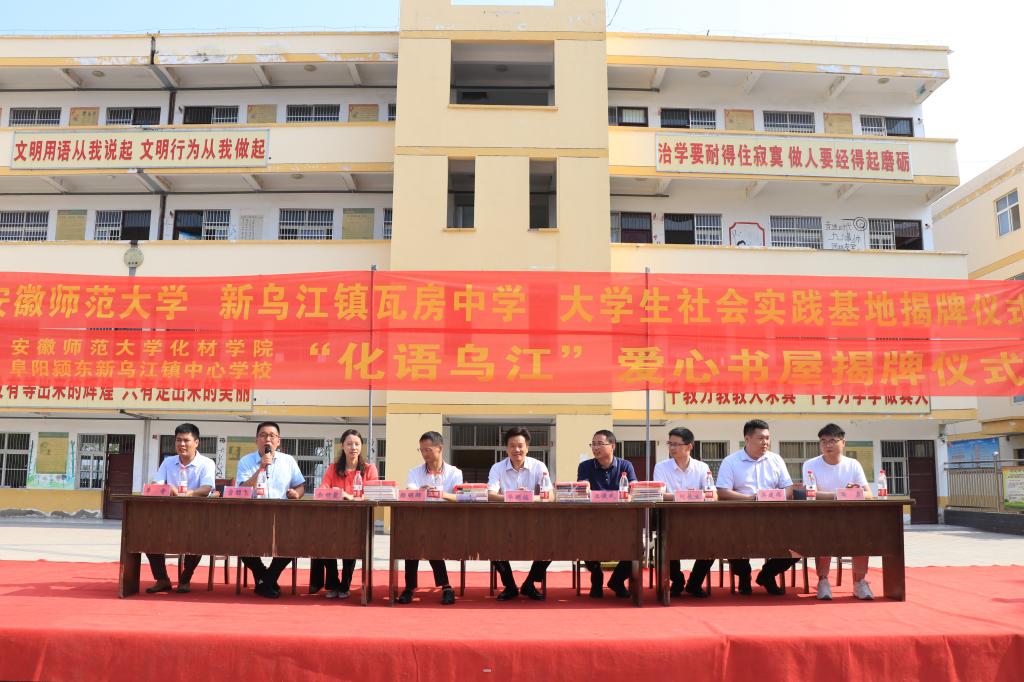 随后,毕明福与颜明辉共同为安徽师范大学在新乌江镇瓦房中学建立的大学生社会实践基地揭牌,刘长生与宫朋飞共同为安徽师范大学美高梅4858线路登录与新乌江镇中心学校共建的“化语乌江”爱心书屋进行揭牌。这标志着美高梅4858线路登录在新乌江镇的社会实践将更加深入和精准地助力乡村教育发展,关爱留守儿童成长。