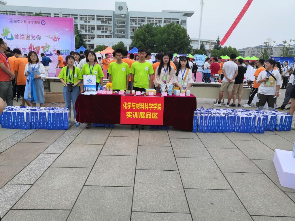 迎新前夕,美高梅4858线路登录领导组、学工组全员参与,将专业特色融入迎新工作,为2019级新生打造了独具一格的迎新“新模式”。在迎新现场,美高梅4858线路登录精心打造三大迎新品牌,努力为2019级新生上好大学“第一课”。一是实训作品展,环保笔筒、流香洗衣液、强力洗洁精等一系列自制产品出现在展示桌上,桌侧整齐摆放数百份礼品袋,内装环保笔筒和流香洗衣液各一份。这是2016级同学在老师的指导下,为2019级新生送上的入学第一份礼物,体现出学院老师、同学对新生的殷切关怀。二是“梦想绽放在创新化材”心愿墙,写下心中小小愿望,遥寄未来的自己。三是(展板内容)“AgZn”“青春”“梦想”等字模激励着新生不忘初心、奋发图强,学生、家长纷纷合影留念。