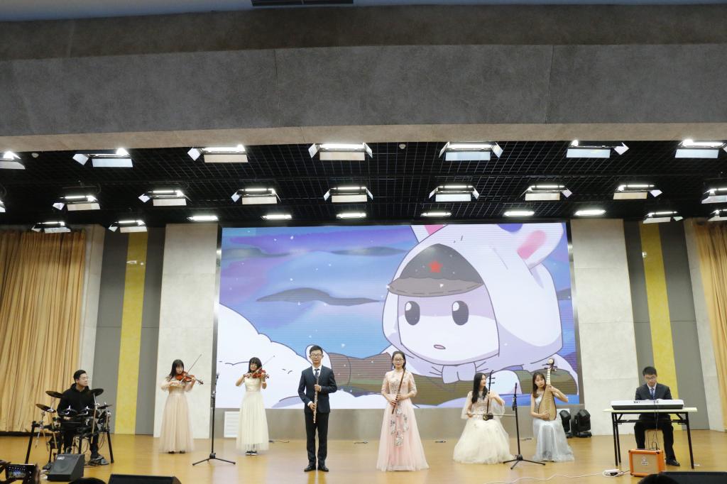 激情四溢的舞蹈之后,19级化学类一班和二班的同学们精心准备的朗诵节目《青春对话》粉墨登场,铿锵有力的朗诵声展示出化材学子如冉冉升起的朝阳般蓬勃的青春。青春如江海,滚滚向前,不可阻挡,19级新生用自己的热情展现出他们在师大怒放、飞扬的青春。大艺团器乐队带来的歌曲串烧《追梦赤子心+茉莉花》巧妙地将西洋乐与传统民乐的结合起来,让现场观众感受到浓浓的赤子之心。在追梦的道路上,挥洒青春的汗水,伴着茉莉的芬芳,一路花开绽放。背上行囊,仰望星空,有星光的陪伴,逐梦之旅便不再孤独。伴随着大合唱《我有一个装满星星的口袋》,晚会进入尾声,挥手告别2019,翘首以盼2020。