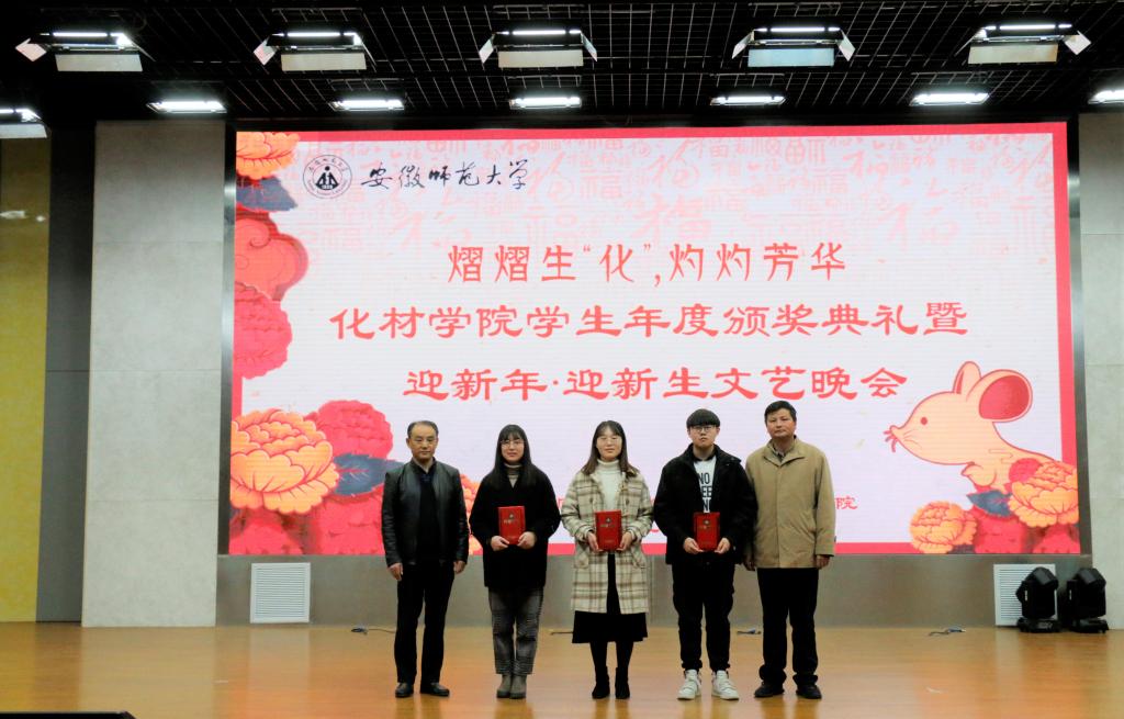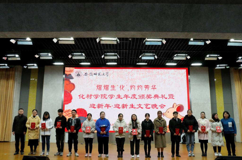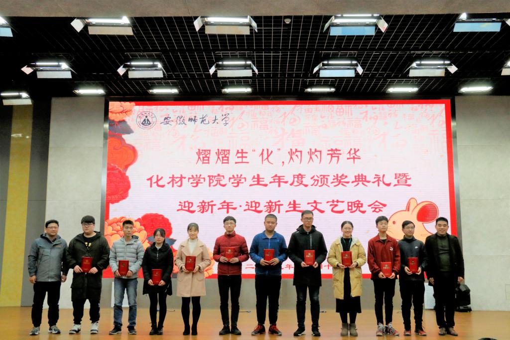 在晚会节目之间,学院对在2019年度取得优异成绩的集体和个人进行了表彰。其中有用实力诠释师大骄子风采、用志愿服务收获意义人生、用汗水在赛场上挥洒辉煌的“模范化材人”;有在社会实践中锤炼品德修为,在集体建设中强化责任担当的“奋进化材人”;也有用技能夯实基础,用知识武装头脑,用毅力与拼搏追寻梦想,用高远目标和必胜决心挑战未知的“卓越化材人”。 这些优秀的模范形象,传递着青春正能量,也为19级新生做出了引领与榜样。学院通过颁奖典礼来激励化材学子在2020年里不懈拼搏、勇攀巅峰。