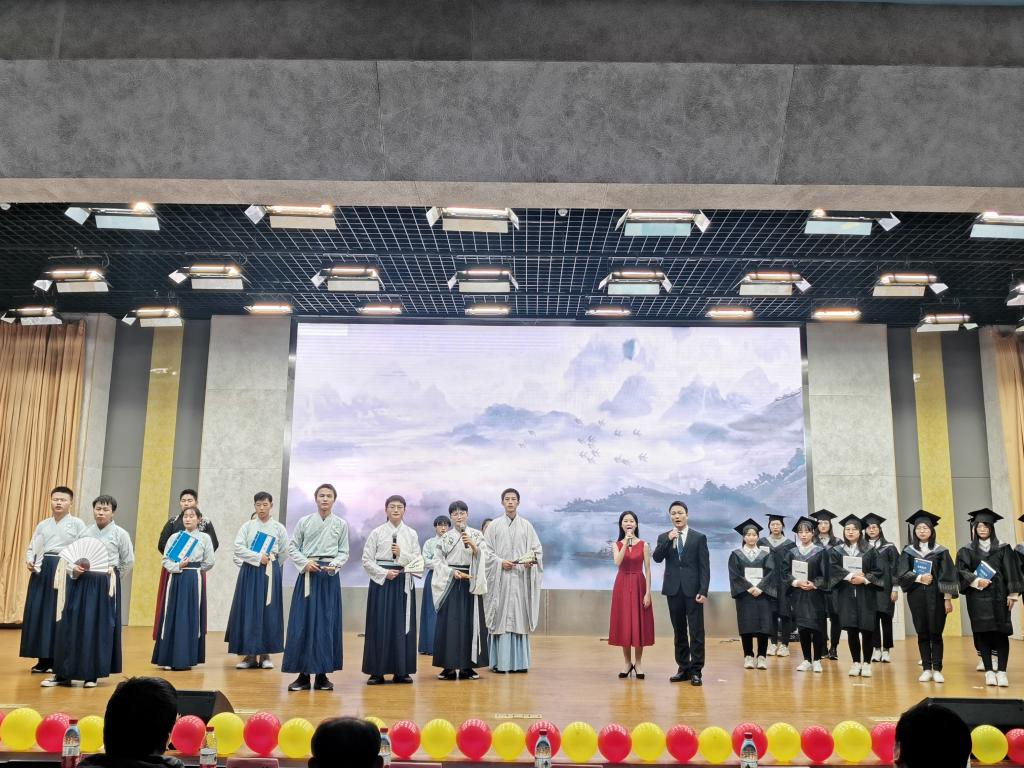 典礼分三个篇章进行,分别为“懵懂—拨云见日,追风逐梦”“启航—志存高远,挂帆远航”“圆梦—青春拂晓,圆梦今朝”。温馨美好的暖场视频、活力四射的开场舞拉开了典礼的序幕,舞蹈张开梦想的翅膀,信仰追寻青春的足迹。