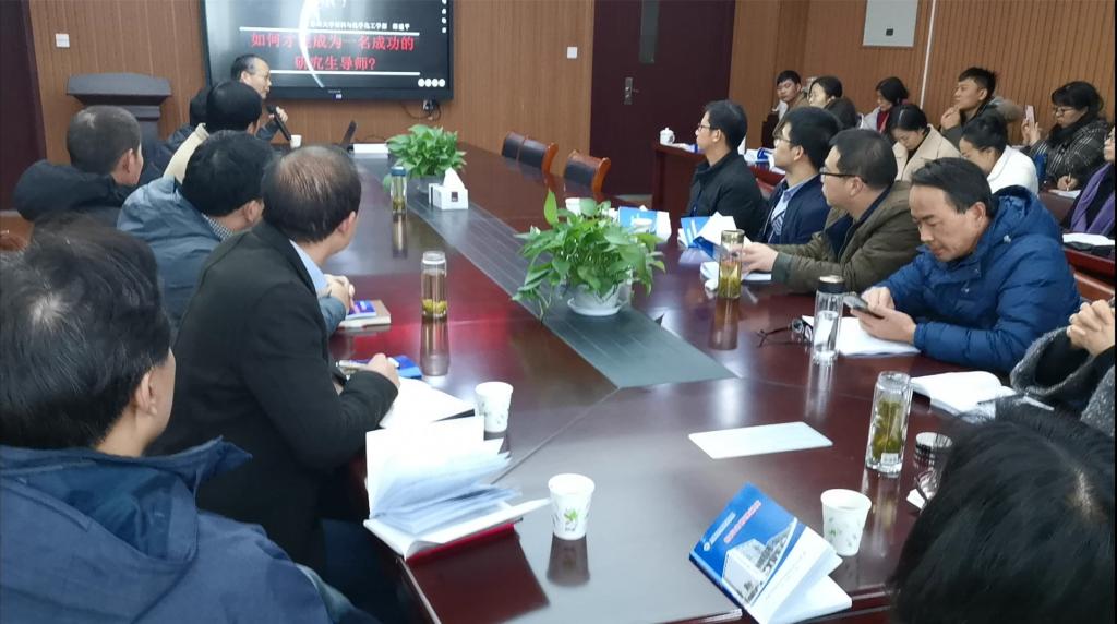 为进一步提高导师指导和培养研究生的能力、提升研究生培养质量,根据学校有关通知要求,12月14日下午,学院在礼勤楼702会议室召开研究生导师专题培训会,本次培训会特邀苏州大学郎建平教授做了题为“如何才能成为一名优秀的研究生导师”的培训报告。学院副院长周双六教授、张小俊教授,各学位点负责人及在校研究生导师参加了培训会。会议由院长高峰教授主持。