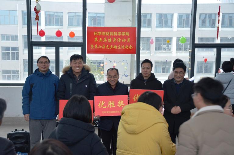 元旦当天,礼勤楼里张灯结彩、喜气洋洋,大家欢聚一堂,感受着冬日不一样的暖意,比赛场上,老师们积极昂扬、奋发进取,大家在一起收获着欢笑、收获着喜悦。经过一天的比赛,最终材料化学系获总分第一名,化学系获二等奖、应用化学系获三等奖、行政教工组、化学工程工艺系、实验中心工会小组获优胜奖。