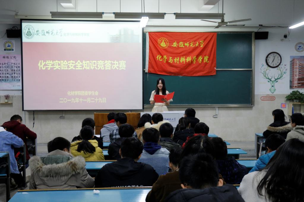 “安全化材——化学实验安全知识竞赛”是今年学院新增的第二课堂的素质拓展活动,旨在让大一新生掌握化学实验安全的基本知识,帮助大一新生尽快掌握实验安全的知识和技能,将实验安全教育落到实处。竞赛的内容涉及到化学实验安全的各方面问题,全面考察了参赛选手的实验室安全知识储备量和现场反应能力。参赛选手以专业为单位进行激烈的实验安全知识对决,此次竞赛的举办增强了大一新生的化学安全责任意识,提升了安全隐患辨识和风险防范能力,为化学实验室的安全管理工作以及教学科研活动的开展奠定了良好的基础。