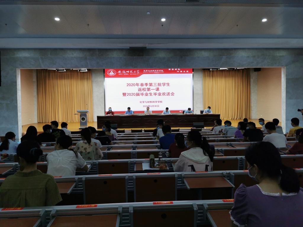 本网讯(美高梅4858线路登录 陈静)6月30日上午,美高梅4858线路登录举行第三批学生返校第一课暨2020届毕业生毕业欢送会,学院党政班子成员、各系主任、毕业班辅导员和返校毕业生参加会议。