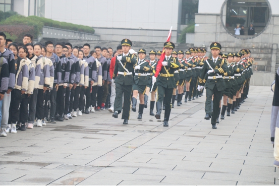 进一步加强大学生的爱国主义教育,引导学生自觉践行社会主义核心价值观,培养学生的国家意识和家国情怀,美高梅4858线路登录于本周一早晨举行了校园升国旗仪式。学院党委副书记余妍霞,人武部国防教育科科长蒋建伟,学院2020级新生辅导员,国旗护卫队升旗护旗队员和学院全体2020级本科生共同参加了本次升国旗仪式。
