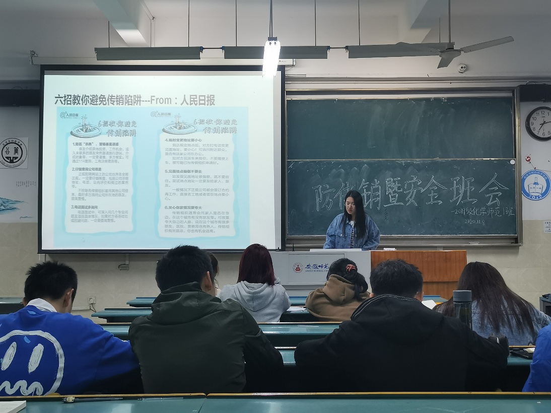 在学院领导的关心指导下,美高梅4858线路登录各年级、各班召开反传销主题班会。班会中,各班负责人带领班级同学学习反传销相关知识,结合自己身边的真人真事,为同学们讲解了传销的危害。同时从传销组织的运行特点着眼,介绍了传销的辨别与防范方法,并且为同学们讲述了进入传销组织后的自救实例,积极引导同学进行自我教育、自我管理、自我服务、自我监督,增强对传销的免疫力。会后,班级同学联名签署了《“净化校园,拒绝传销”承诺书》,承诺加强反传销防范意识,不参与、不宣传传销活动,对身边发生的传销活动做到及时发现、敢于揭发,共建和谐校园。