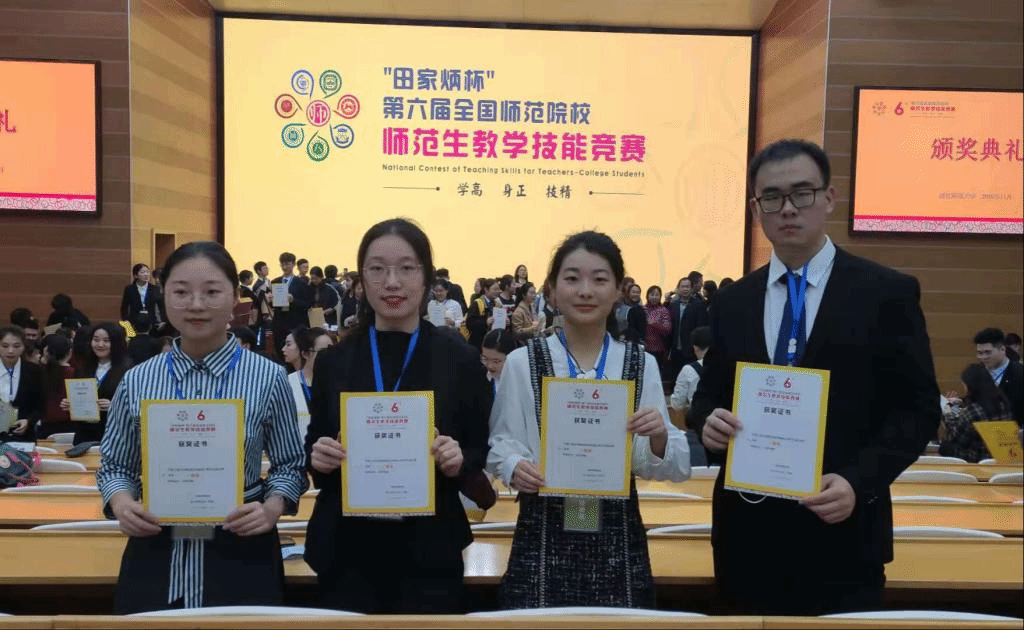 本网讯(美高梅4858线路登录 王芳)2020年11月19日至20日,“田家炳杯”第六届全国师范院校师范生教学技能竞赛在浙江师范大学顺利举行。大赛初赛阶段共吸引全国120所院校,539名选手参加,决赛阶段共有81所学校、168名选手参加。经过现场抽题,教学设计、多媒体课件制作、即席演讲、有生模拟授课等环节的激烈角逐,由美高梅4858线路登录孙影、周冬冬老师指导的2017级化学师范专业的王磊同学表现突出,荣获化学组一等奖。
