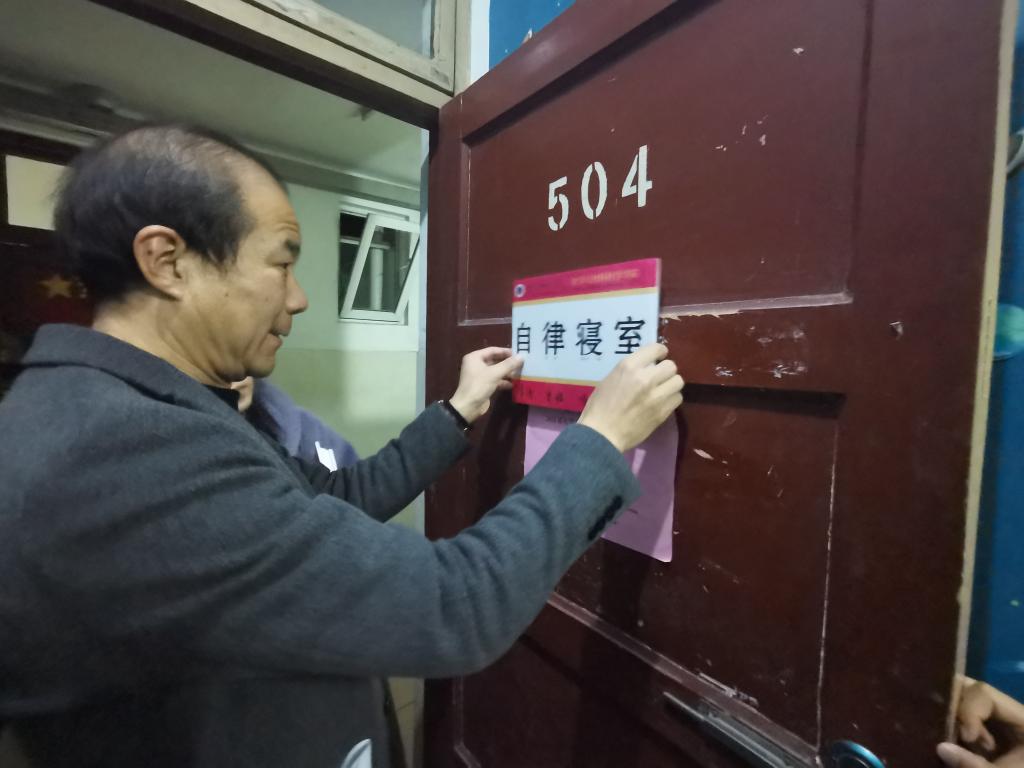 通过例行查寝、突击查寝、定期全院安全大检查等多种方式,督促学生构建温馨、自律、奋进的和谐室风。
