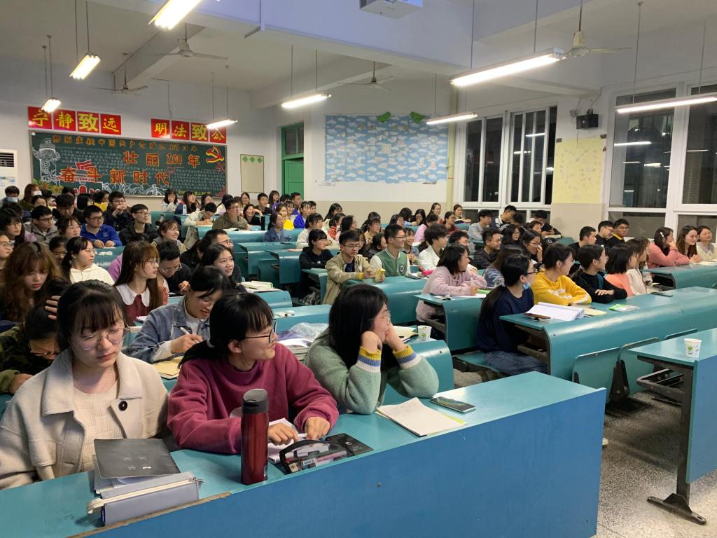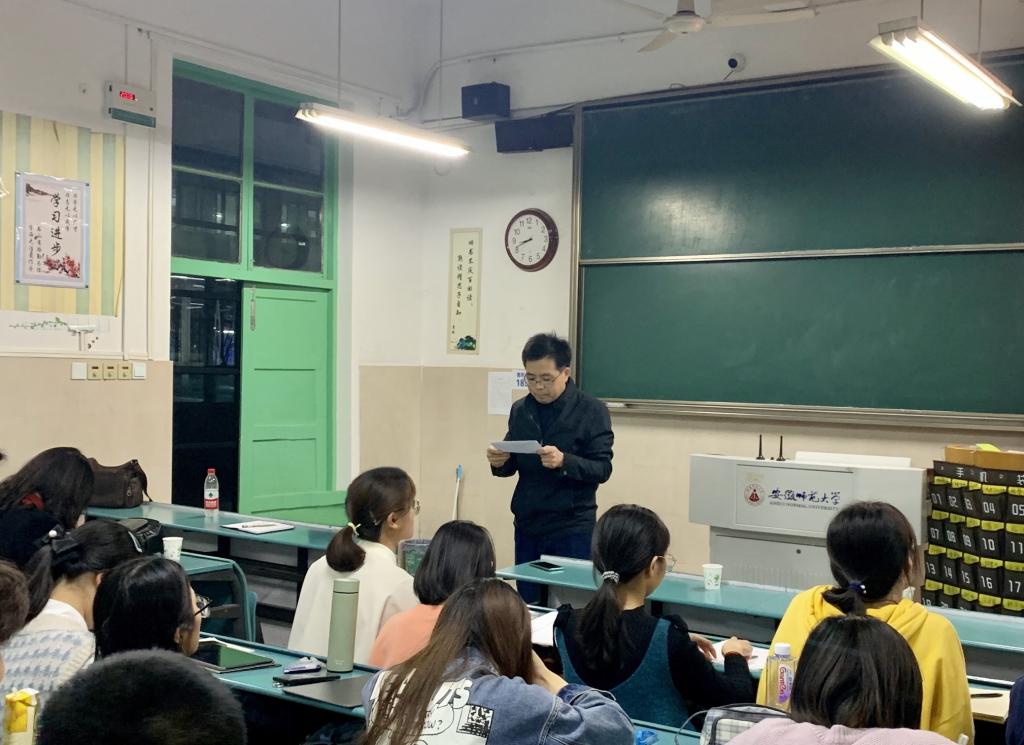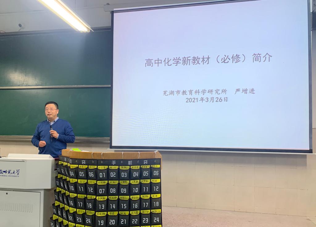 严增进老师围绕“融合核心素养的高中化学新教材”对高中化学新教材(必修)进行了详细的解析,通过新教材中“元素及其化合物”与“基本概念和原理”穿插编排的结构特点的讲解,可以看出新版教材对老版教材的继承、发展和创新,即分散了学习难度又符合学习规律,他希望2018级化学专业师范生要尽快熟悉新教材。陈波老师围绕“小荷才露尖尖角——漫谈实习教师走好职业生涯的第一步”主题,从教育实习的目的和功能入手,强调了教育实习的必要性。他指出在教育实习中应及时做好身份转换与角色变化,尽快熟悉实习学校的作息时间与管理规定,融入实习班级。最后,陈波老师用“坚定的职业向往、匹配的个性气质、扎实的专业基础、敏锐的洞察能力、高超的沟通技巧”总结了教师的特征,期待学生的完美蜕变。两位老师的报告从一线教学实际出发,内容充实,语言生动幽默,为即将到来的教育实习指明了方向。