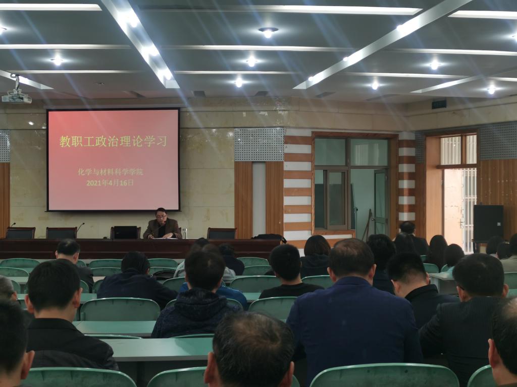 本网讯(美高梅4858线路登录 程紫丹)4月16日下午,美高梅4858线路登录召开教职工大会,集中开展政治理论学习,学院领导班子成员及全体教职工参加了会议,会议由学院党委书记汪俊武主持。
