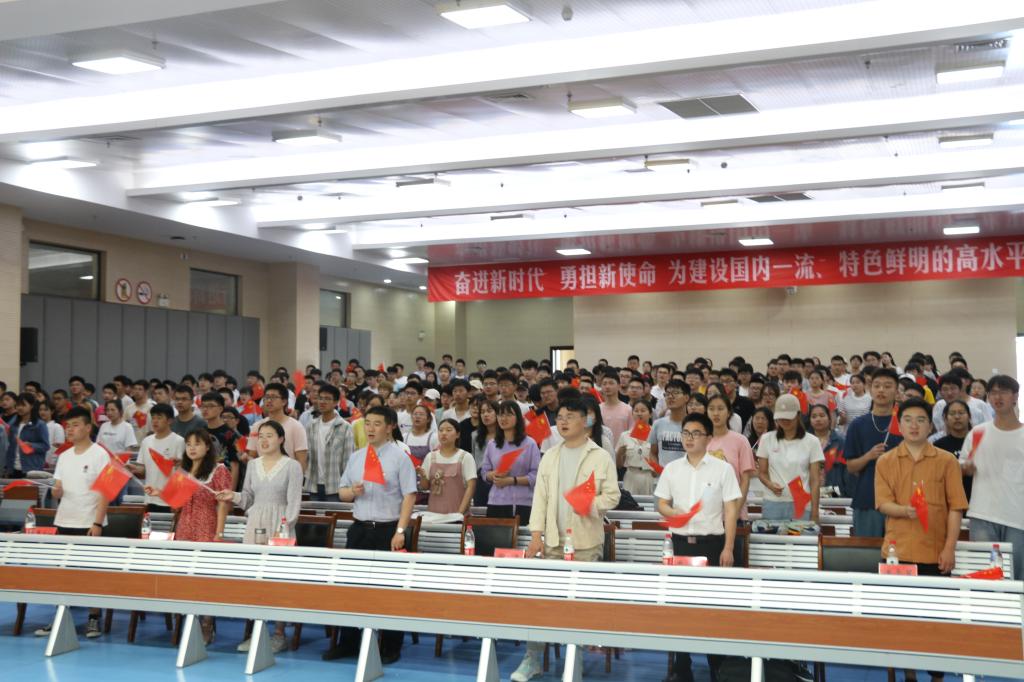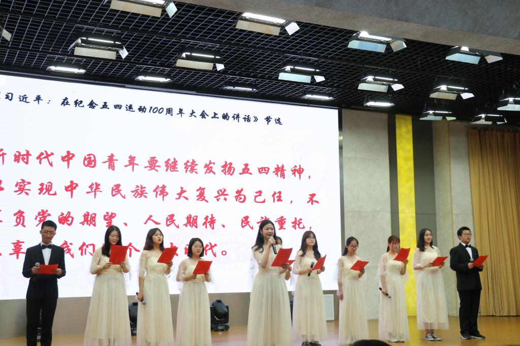 伴随着《光荣啊,中国共青团》激昂的旋律之后,大屏幕以图片的形式展现2020级本科生入校以来所经历的点滴“成长回忆”;朗诵队朗诵《习近平:在纪念五四运动100周年大会上的讲话》节选并带领全体同学起立进行“青春宣誓”:树立远大理想,热爱伟大祖国,担当时代责任,勇于砥砺奋斗,练就过硬本领,锤炼品德修为。在场青年学子在一句句郑重宣誓下感悟成年的深刻内涵,铭记青春的责任担当。