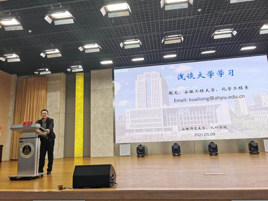 5月9日上午,学院团委组织2020级本科生开展“青春心向党,奋进新时代”主题团日活动。第17届“师大骄子”十佳大学生提名奖获得者王磊、宋稚豪同学分享了大学四年的学习体会;学院校友、第七届“中国青少年科技创新奖”获得者蒯龙为全体同学作题为《浅谈大学学习》的青春报告;院党委副书记李古州结合学习习近平总书记考察清华大学时的重要讲话精神和安徽省委副书记程丽华在全省“学党史 强信念 跟党走”主题团日活动上的讲话精神,作了题为《永远跟党走 奋斗正青春—共青团员的初心和使命》的主题团课。活动结束后,2020级本科生纷纷表示要志存高远、爱党爱国、心怀理想、逐梦前行,始终把学习作为自己安身立命之本,勇于投身实践,练就过硬本领,为实现中华民族伟大复兴的中国梦贡献力量。
