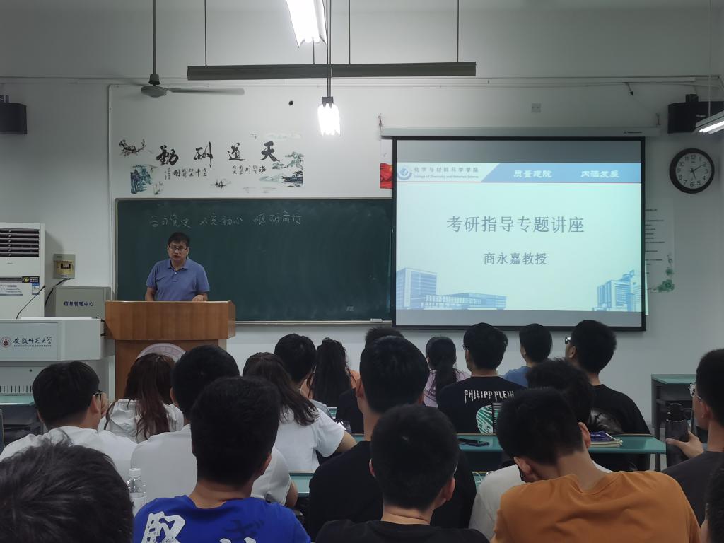 商永嘉教授为同学们做了题为《学习党史不忘初心砥砺前行》的专题讲座。他为同学们讲述了毛泽东同志在北京大学图书馆工作的经历,强调厚重的人文底蕴对于成长蜕变的重要性,要求同学们要积极认真学习党史,学史明理、学史增信、学史崇德、学史力行,在党史中汲取成长的力量。商永嘉结合自己在江苏、浙江、香港等地求学的经历,引导同学们要开阔视野,敢于突破自我,勇于奋勇争先。针对班级同学扎堆报考的不利现象,他提醒大家慎重选择,并列出诸多化学学科实力雄厚的大学,希望大家析毫剖厘,细细斟酌。最后,他为班级同学加油打气,勉励大家要做好人生这一次关键的选择,不忘初心,砥砺前行。