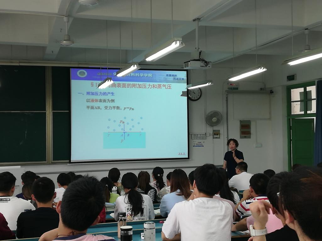 本网讯(美高梅4858线路登录唐丽君)6月2日上午,金莉莉老师在行知楼2010201教室进行本科教学公开课,为2019级材料化学专业的同学讲授《物理化学》中“界面现象”相关内容。学院部分领导、校督导团、学院督导组老师及部分教师参加了此次课程观摩活动。