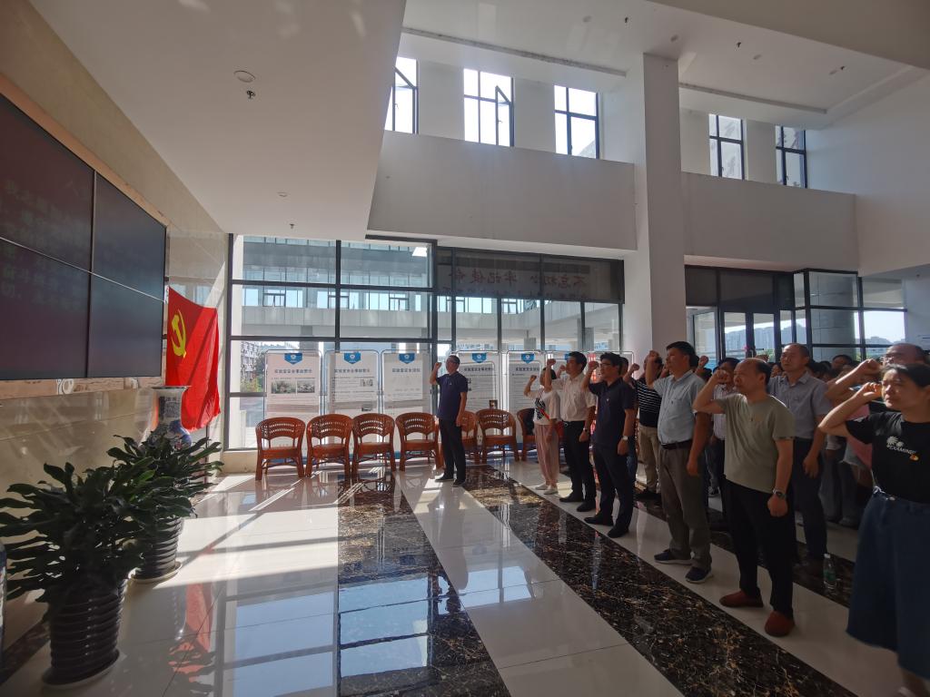 本网讯(美高梅4858线路登录 程紫丹)6月23日下午,美高梅4858线路登录党委在学院二楼大厅举行2021年第二批新党员入党宣誓仪式暨重温入党誓词主题党日活动。学院党委书记汪俊武,党委副书记、院长高峰,党委副书记李古州,党委委员、副院长周双六、王波涛,党委委员崔鹏及各党支部书记、支委、师生党员代表、2021年第二批新发展入党的84名预备党员共同参加仪式,仪式由李古州主持。