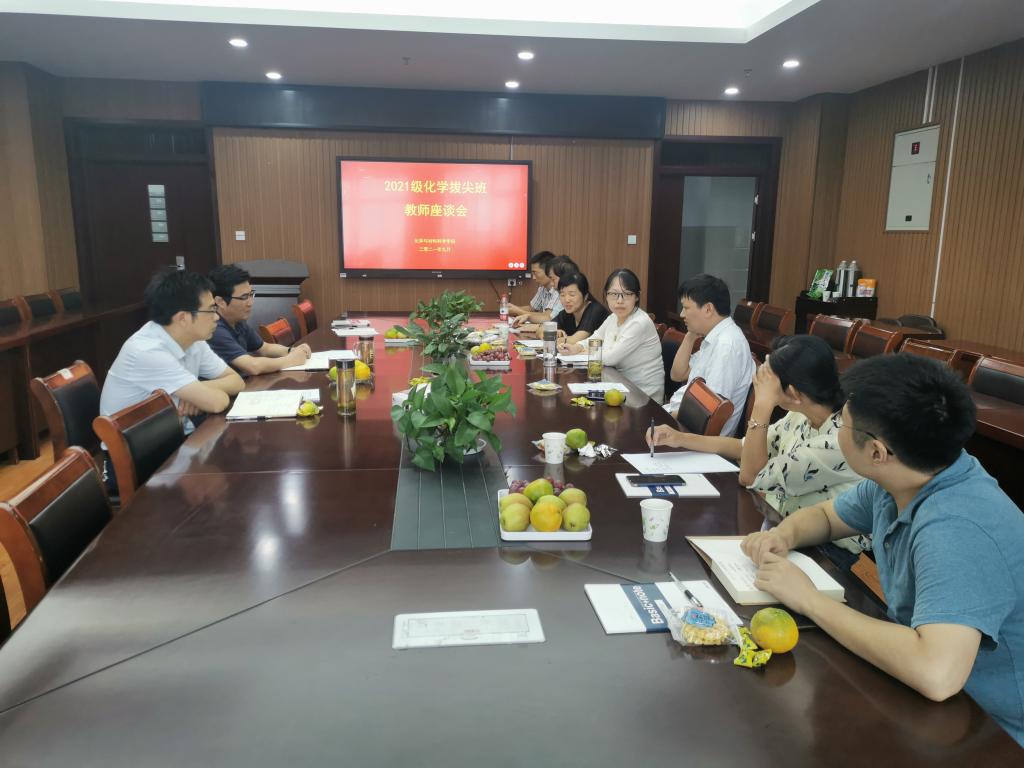 为进一步提高美高梅4858线路登录拔尖班学生的人才培养质量,9月29日上午,美高梅4858线路登录在702会议室召开了2021级化学拔尖班第一学期任课教师座谈会。学院高峰院长、方臻副院长、大学语文何振老师、高等数学朱敏老师、大学英语吴平老师、线性代数黄玉成老师、化学系主任阙荣辉老师、班主任刘云春老师及辅导员张薇老师参加了会议。座谈会由高峰院长主持。