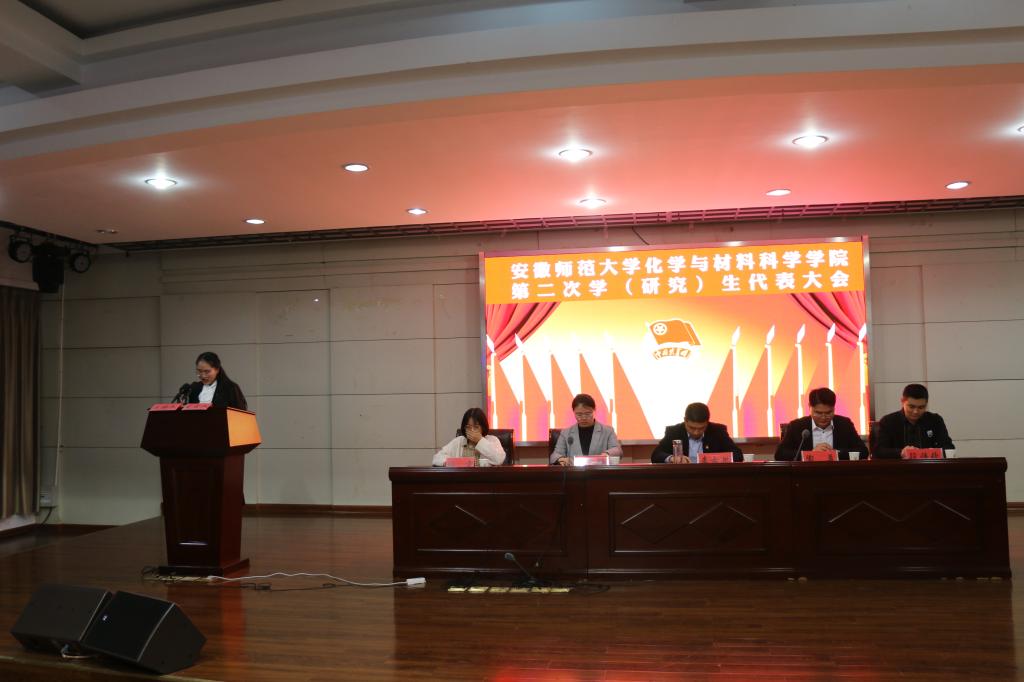 与会代表听审议并通过了校学(研)代会代表选举办法、学院学(研究)生会主席团选举办法、学(研究)生委员会选举办法及学(研)代会总监票人、监票人、总计票人、计票人名单。与会代表通过无记名投票方式选举了安徽师范大学化学与材料学院推荐参加校学(研)代会代表、学(研究)生会主席团成员、学(研究)生委员会成员。大会在热烈的掌声中圆满结束。