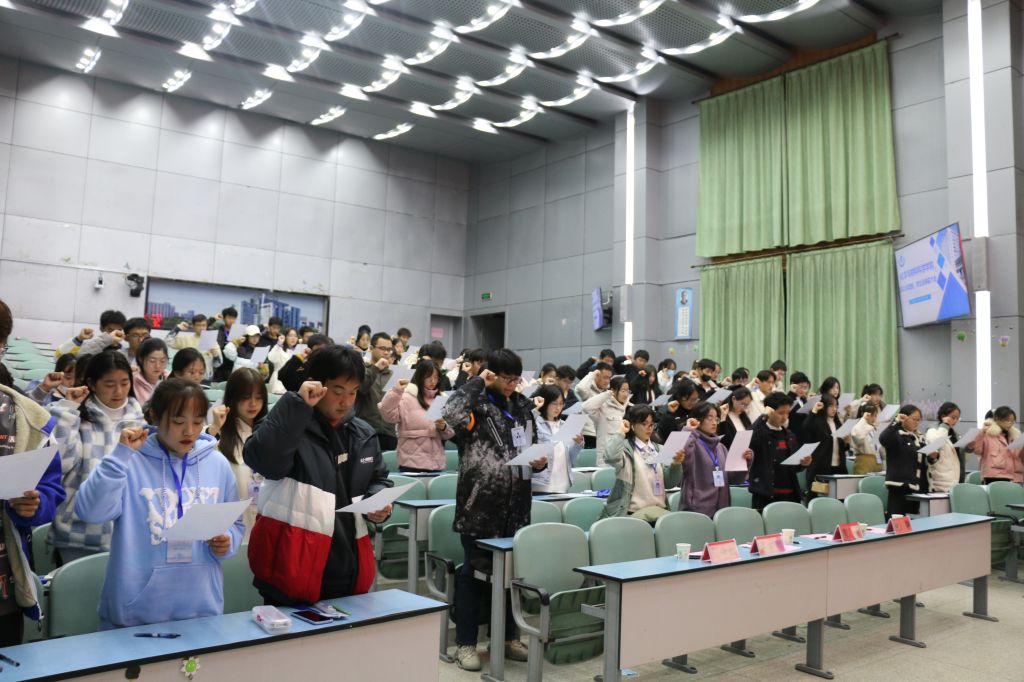 新老交替,共担时代己任。院团委学生副书记吴泓婧同学代表全体工作人员发表就职演讲,她对学院领导老师长期以来的指导和关心表达了感谢,并表示新一届团委、学生会将本着全心全意为同学服务的理念,继续发挥好学生组织的桥梁纽带作用,紧密结合学院各项中心工作,团结和教育广大青年,创造性地开展各项工作,为学院人才培养、青年思想教育等工作贡献青春力量。2021届团委、学生会全体工作人员签署《入职宣誓书》,院学生会主席团成员沙凝带领全体成员进行任职宣誓,一句句洪亮的宣誓,更加坚定了全体工作人员的工作信念。