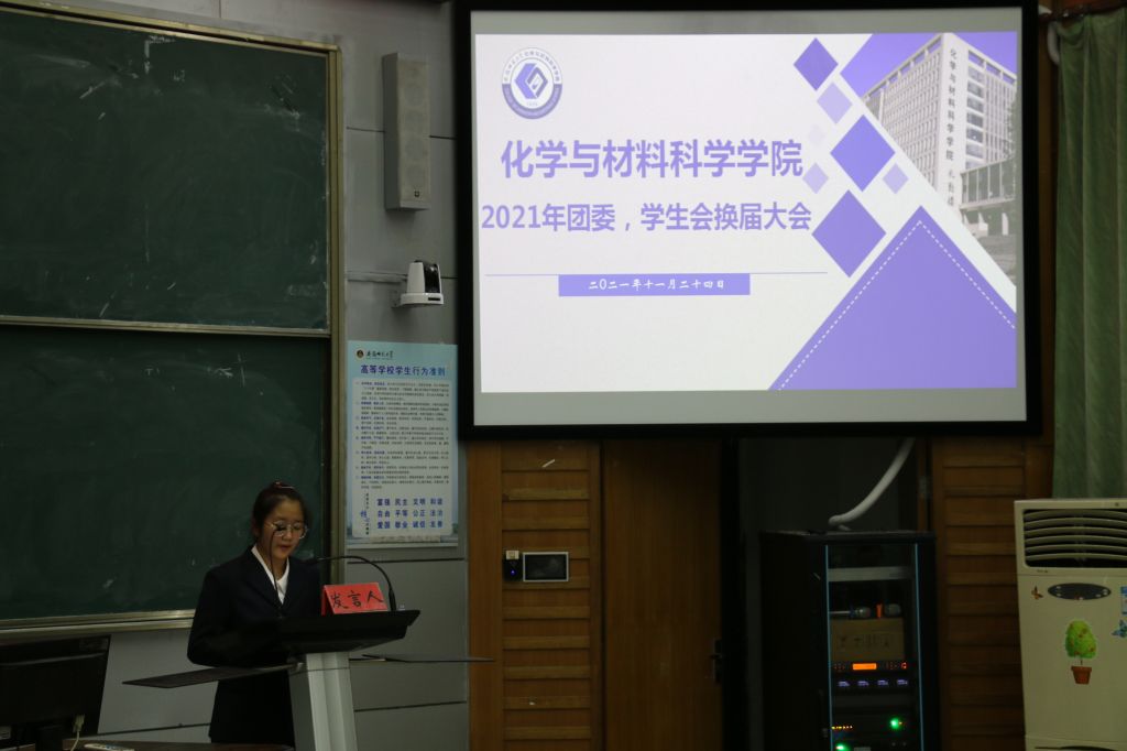 承前启后,继往开来。换届大会在庄严的国歌声拉开了序幕。李古州、陶勇为2020届团委学生会优秀工作人员代表颁发聘书,陈静、段传钦为2021届团委、学生会优秀工作人员代表发放工作证,陈静宣读了新一届团委、学生会成员名单。
