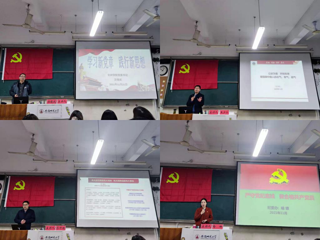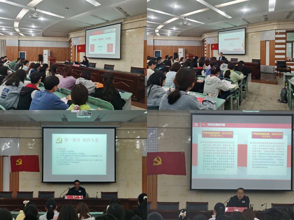 学生党员教育培训班紧抓党章学习“必修课”,重点关注党性修养教育、党风廉政教育,邀请学院党委书记汪俊武、宣传部副部长王少仁、校纪委办纪检监察室主任喻娜、校团委副书记廖仲明进行专题授课,教育引导新时代的大学生党员要坚定理想信念,严守纪律底线,不断增长才干,增强做中国人的志气、骨气、底气,在努力发挥党员的先锋模范作用的道路上践行中华民族伟大复兴的历史使命。